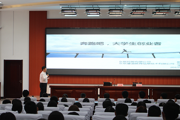 5月27日上午,学院第四十四次“企业家进校园”活动报告会在滨海校区举行。东软睿道教育信息技术有限公司总裁李印杲先生,在会上作了题为“奔跑吧,大学生创业者”的报告。学院副院长毕建华主持报告会,招生就业处负责同志、二级学院相关人员及信息工程学院师生参加了报告会。