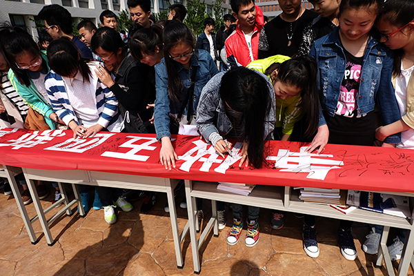 学生志愿者代表在发言中代表全体学员郑重承诺,会珍惜学习机会,严格遵守培训班的规章制度,肩负使命、用心学习、用心奉献,引领和带动广大同学从自身做起,用最美的形象为全国各地的参赛团队提供一流的服务,为本届技能大赛奉献自己的力量。随后,全体志愿者纷纷在“我为国赛添光彩,争做五四新青年”的横幅上签名。