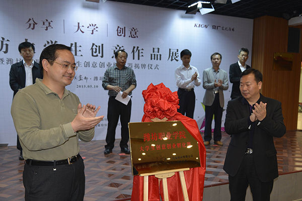 5月10日,首届“分享•大学•创意”潍坊大学生文化创意作品展开幕式暨全讯新2网官网大学生创意创业孵化器揭牌仪式,在京广文化广场潍州大讲堂举行。学院副院长贺志强,中共奎文区委常委、宣传部长李强,潍坊银行开发管辖行行长稽海涛,奎文文化创意产业协会会长刘晓阳,奎文文化创意产业协会秘书长纪建华出席。师范/文化创意学院主要负责同志及部分师生、北京出版集团负责同志、高校创业研究专家、金融机构代表、风投机构代表和媒体记者百余人参加了活动。