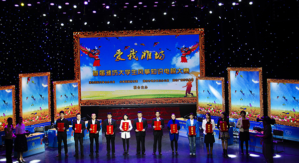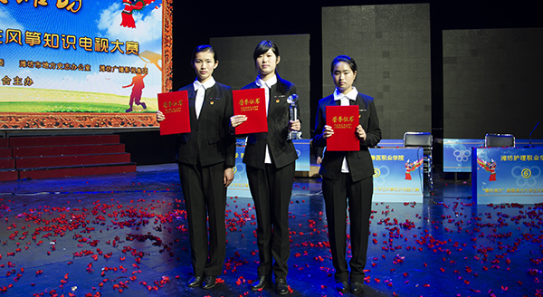 4月23日,全讯官网团委学生工作处组织由信息工程学院王莹香、经营管理学院赵艳艳、国际商务学院王雪三名同学组成的代表队,参加了由潍坊国际风筝会办公室、共青团潍坊市委、潍坊市地方史志办公室、潍坊广播影视集团联合主办的“爱我潍坊”首届潍坊大学生风筝知识电视大赛。学院党委副书记宋桂言到现场观看了比赛。