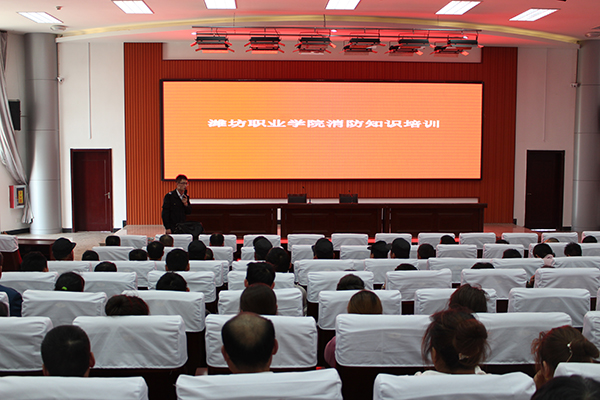 为落实潍坊市政府办公室关于《全市开展全员消防培训演练集中活动实施方案》通知精神,进一步增长全院各重点岗位工作人员的消防安全知识,提高消防应急处置能力,学院邀请潍坊政安防火技术有限公司的两名消防专家,于5月20日、21日分别在奎文、滨海校区为全讯官网开展消防知识培训。安全保卫处、学生公寓管理中心、饮食服务中心、物业管理中心、学院招待所、保安等人员参加了培训。
