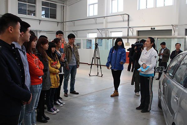 毕建华代表学院欢迎台湾记者采访组来全讯官网滨海校区采访报道,并介绍了全讯官网滨海校区建设及学院办学方向、专业设置、校企合作、服务蓝黄战略等方面的情况。记者采访组随后对经营管理学院课堂教学、汽车工程学院学生实训实习进行了实地采访。