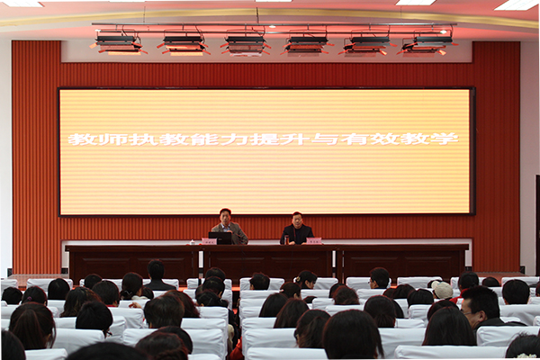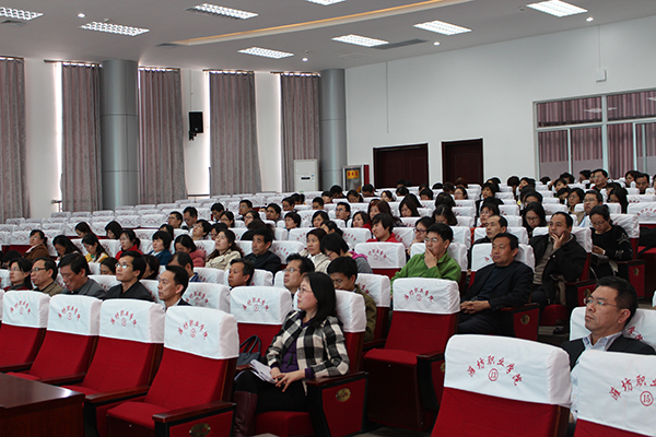 报告由山东畜牧兽医职业学院党委副书记徐建义教授主讲。徐建义教授是教育部动物生产类教学指导委员会成员、全国农业职业教育研究会专家组成员、山东畜牧兽医学会常务理事、山东省禽病学会会副主任委员、潍坊市禽流感防治专家组组长、山东省教学名师、三级教授,在全省乃至全国享有极高的声誉。徐教授在报告中,以“教师执教能力提升与有效教学”为主题,从职业教育课程开发背景与德国职业教育和课程开发的五要素,即课程设计、教学手段与方法、教学资源建设、教材建设和课程教学实验实训条件建设等方面,就教师如何提升执教能力、如何打造有效课堂进行了深入细致的阐释和讲解。