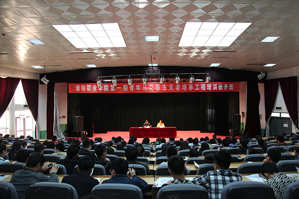 4月16日下午,学院第一期青年马克思主义者培养工程培训班开班仪式在奎文校区报告厅举行。学院党委副书记宋桂言出席并作首场专题报告。学院团委学生工作处相关人员,各二级学院分管学生工作负责同志、团总支书记,培训班学员及学生代表共计500余人参加活动。学院团委负责同志主持会议。