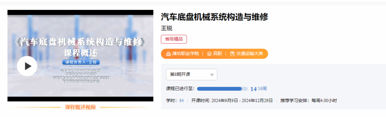 职业教育国家在线精品课程是教育部为推动职业教育优质数字资源开发与开放共享,提升职业院校关键办学能力的重要项目,旨在发挥职业教育数字化转型升级、促进优质教育资源均衡、深化教学改革等方面的重要作用,代表着我国职业教育课程建设的最高水平。