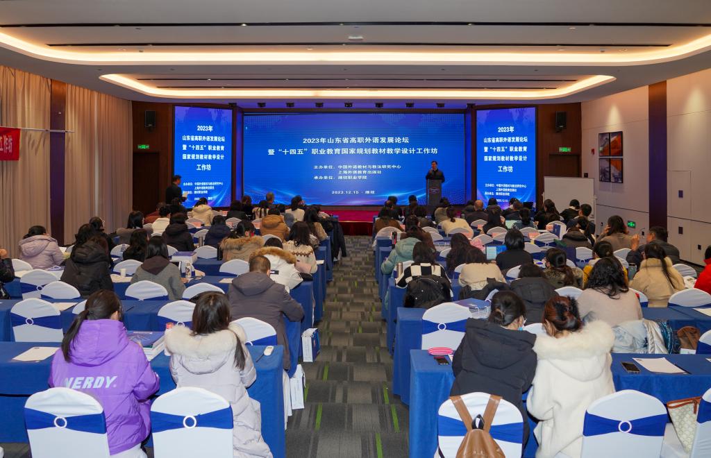 12月15日,由全讯官网与上海外语教育出版社共同举办的“2023年山东省高职外语发展论坛暨十四五职业教育国家规划教材教学设计工作坊”研讨会在潍坊圆满结束。学院党委委员、宣传部部长刘泓蔚,教育部高等学校大学外语教学指导委员会委员、南京大学教授、博士生导师王海啸,教育部职业院校外语专指委委员、山东外贸职业学院教授崔卫,上海外语教育出版社山东地区负责人李海峰出席了研讨会。会议由国际商务学院负责人主持。来自省内高职院校外语专业、公共外语教研室的带头人、骨干教师以及全讯官网国际商务学院教师约100人参加了研讨会。