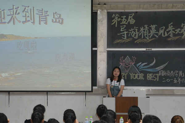 由国际商务学院承办的第五届导游精英风采大赛决赛于6月30日下午在奎文校区举行。该活动为学院第十一届科技文化艺术节的系列活动之一。评委由国际商务学院旅游管理教研室专任教师担任。