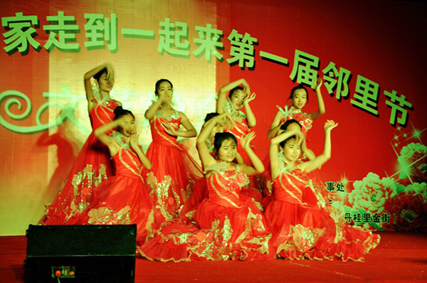 晚会在学生青春洋溢的《美丽心情》开场舞中拉开帷幕.社区大叔的歌声、大妈的舞蹈让大家领略到了老年人的激情;大学生举止高雅的《礼仪操》更是一场视觉的冲击,赢得掌声阵阵;舞蹈《秀色》让整个晚会现场沉浸在了欢乐祥和的气氛中。