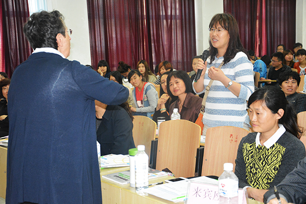 Preedy女士的讲座融合了德国先进的职业教育理念,以更广阔的视野和全新的角度,以英语课堂教学为例,就高职教学中课程建设、教师发展、教学方法、课堂设计等问题进行了深入浅出的事例讲解与示范。内容主要包括德国职业英语教学如何开展、英语在德国学生日常学习和日后的工作中的地位和作用、高职英语教师如何加强自身修养、中国老师课堂上易犯的错误、如何组织50人甚至100人以上的大班教学、怎样应对学生英语水平参差不齐的现状、怎样灵活使用教材使之适应学生的水平和教学目的等。随后,Preedy女士与师生进行了互动交流,就师生关心的课堂教学中遇到的困惑、难题进行了探讨。