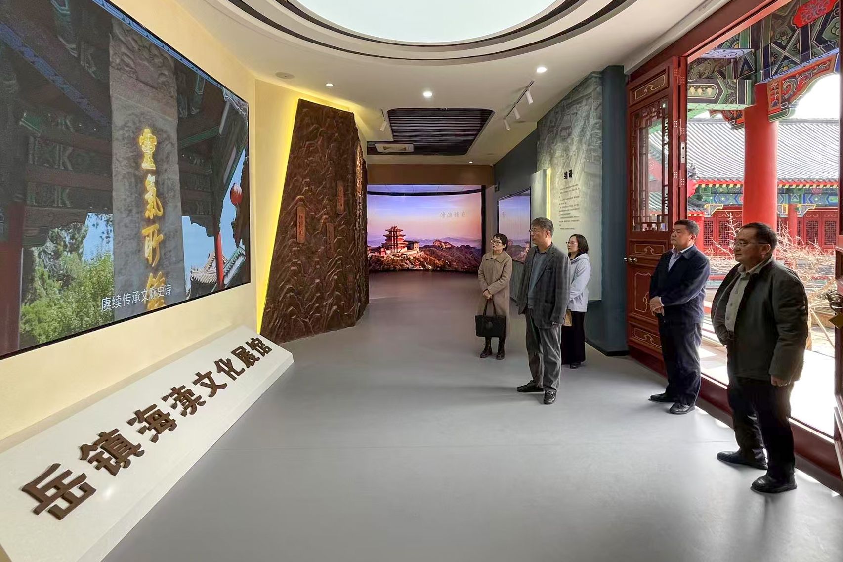 考察期间,该院一行实地参观了文旅集团新近建成的沂山研学基地的文化展馆、实践教学区及特色文旅项目,深入了解了基地运营模式与资源优势。座谈会上,刘景海介绍了集团在研学旅游、乡村振兴等领域的实践成果,提出通过校企联动推动人才与产业协同发展的合作愿景。国际商务学院主要负责人介绍了该院专业发展现状、专业特色、人才培养模式等,并表示,此次合作将依托学院专业优势,结合地方文旅资源,共同打造实践育人平台,助力学生技能提升与区域文旅产业升级。